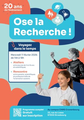 Cette année encore, la Collectivité européenne d’Alsace, le Vaisseau et le CNRS – Délégation Alsace vous invitent à l’évènement Ose la Recherche! Le principe ? Permettre aux jeunes de 14 à 16 ans et à leurs parents de rencontrer des scientifiques de différents domaines et en apprendre plus sur le monde de la recherche. Cet évènement unique est une opportunité pour explorer la diversité des métiers de la science, la richesse des disciplines et la variété des parcours. Une édition spéciale puisque l’évènement fête ses 20 ans !