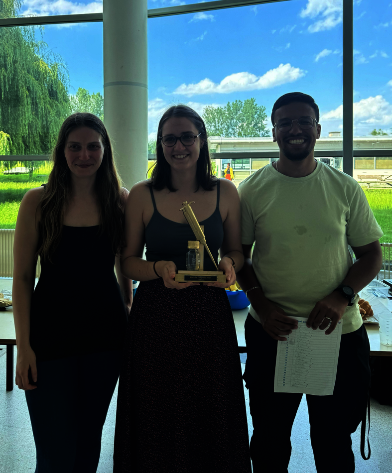 L’édition 2024 du WIP Junior (Work in Progress) a été organisée le 7 juin 2024. Cette journée a permis aux jeunes membres de notre unité de partager leurs travaux avec leurs collègues et de découvrir les recherches menées dans notre institut. Les présentations ont été marquées par leur originalité, avec des quiz interactifs, des mises en scène et des vidéos, favorisant des échanges riches et constructifs. La pause déjeuner a été l’occasion de prolonger ces discussions scientifiques autour d’un buffet convivial. À la fin des présentations, des Olympiades scientifiques ont eu lieu. Fanny (équipe Wagner) a décroché la première place, remportant ainsi la fameuse pipette d’or, suivie de près par Walid et Agathe.