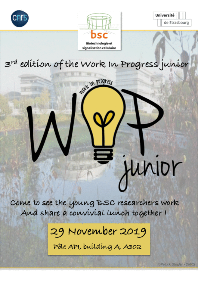 Le mini-symposium WIP Junior ('Work In Progress') a eu lieu le 29 novembre 2019. Cette journée a permis aux jeunes chercheurs de l'unité (étudiants Master, doctorants, postdocs) de partager leur travaux en cours sous forme de posters et communications orales.